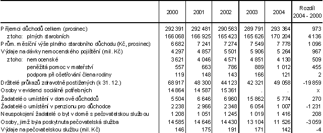 Sociální péče se týká různých vrstev obyvatel. Největší podíl představují osoby pobírající důchodové dávky a mezi nimi je více než polovina důchodců starobních. V Praze v roce 2004 příjemci starobních důchodů představovali 58 % ze všech důchodců.
