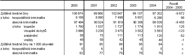 - Na 1 000 obyvatel v roce 2004 připadlo 84 zjištěných trestných činů