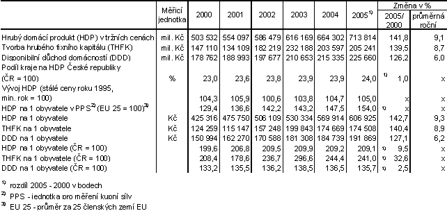 Tvorba HDP na obyvatele a tvorba hrubého fixního kapitálu (THFK) na obyvatele dosahuje v Praze dvojnásobku celorepublikového průměru, zatímco disponibilní důchod domácností je jen o necelý 1,5 násobek vyšší. THFK jako velmi sledovaný ukazatel je výrazem růstu makroekonomické výkonnosti a toho, jak se tento růst bude odrážet do další výroby. Oba ukazatele ve sledovaném období vykázaly rostoucí tendenci, a to jak v absolutních, tak relativních ukazatelích. Podíl Prahy na tvorbě HDP České republiky činí na konci sledovaného období 24 % a výrazně se neměnil.