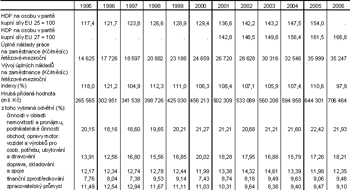 · HDP na osobu v paritě kupní síly (tzv. vývoj reálné konvergence k průměru zemí EU) 1995 – 2005 resp. 2001 - 2006 ČSÚ