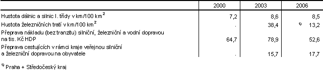 Pro hustotu železničních tratí jsou v roce 2006 uvedeny údaje za Prahu a Středočeský kraj celkem.. Ze srovnání s ostatními regiony vyplývá, že v hustotě železničních tratí zaujímal region, který tvoří hl. m. Praha spolu se Středočeským krajem páté až šesté místo mezi všemi kraji v republice, s hustotou železničních tratí o 1,0 km vyšší než představoval průměr za ČR.
