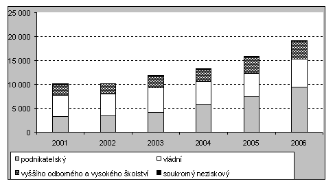 · Výdaje na VaV podle sektorů 2001 – 2006 ČSÚ