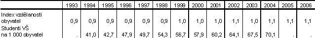 · Index vzdělanosti obyvatel 1993 – 2006 ČSÚ