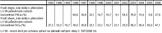 Podílu stanic, kde došlo k překročení určených limitů koncentrace těchto dvou vybraných znečišťujících látek v průběhu sledovaného období značně kolísá. Tyto výkyvy jsou ovšem ovlivněny i tím, že v některých letech nedojde k zahrnutí určitých měřících stanic z důvodu nedostatečného počtu měření.