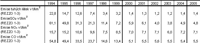 Emise ze stacionárních zdrojů v přepočtu na 1 km2