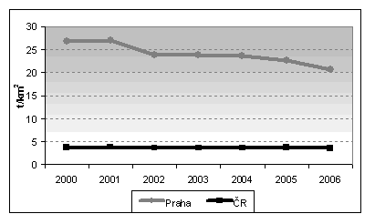 Meziroční výkyvy, které se u tohoto ukazatele stejně jako v Praze projevují i ve většině krajů nelze vyhodnotit z hlediska nějakých vývojových tendencí. Je pouze zřejmé, že v hl. m. Praze je nejdůležitějším prostředkem k zlepšení imisní situace trvalé omezování automobilové dopravy zejména v rozšířeném centru města.