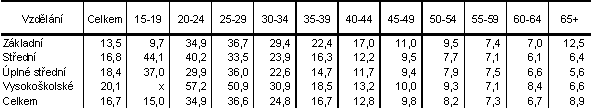 Jednoznačně lze rozdíly v intenzitě migrace podle věku v kombinaci s dosaženým vzděláním vidět z následující tabulky. Díky výsledkům ze Sčítání lidů, domů a bytů je tedy možné zjistit intenzity stěhování obyvatel podle věku a zároveň podle vzdělání.