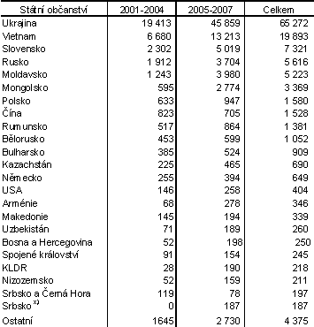 Vnitřní stěhování cizinců podle státního občanství v ČR za roky 2001-2007