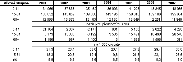 Vnitřní stěhování v ČR za roky 2001-2007 podle základních věkových skupin