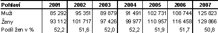 Vnitřní stěhování v ČR za roky 2001-2007 podle pohlaví
