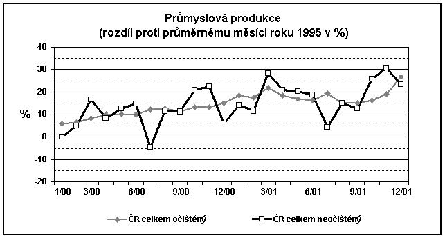 Vliv počtu pracovních dnů se v roce 2001 neprojevil. Ve 4. čtvrtletí 2001 při nestejném počtu pracovních dnů (o 1 den více) ve srovnání se 4. čtvrtletím 2000 vzrostla průmyslová produkce o 5,1 %.
