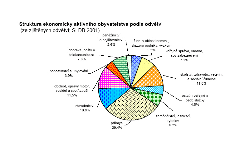 Struktura ekonomicky aktivního obyvatelstva podle odvětví (ze zjištěných odvětví, SLDB 2001)