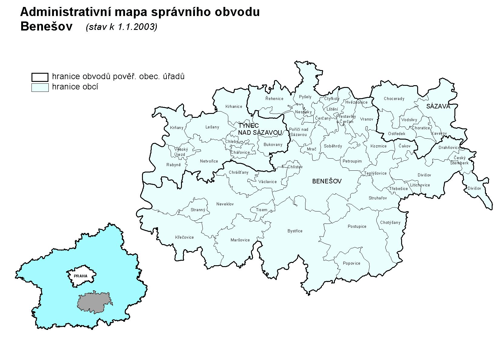 Administrativní mapa (stav k 1. 1. 2003)