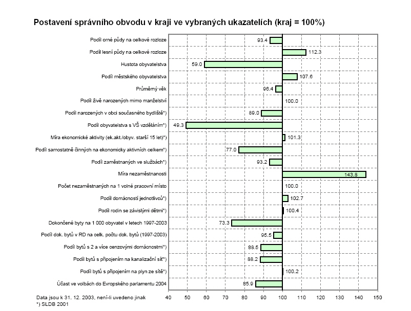 Postavení správního obvodu v kraji ve vybraných ukazatelích (kraj = 100 %)