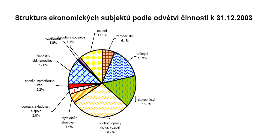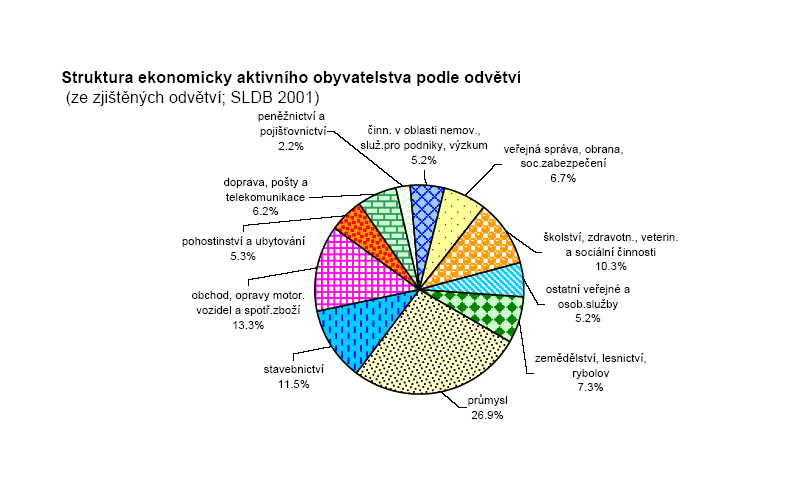 Struktura ekonomicky aktivního obyvatelstva podle odvětví (ze zjištěných odvětví, SLDB 2001)