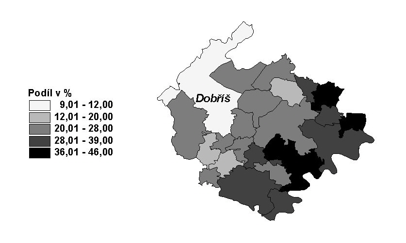 Podíl neobydlených bytů na bytech celkem v roce 2001