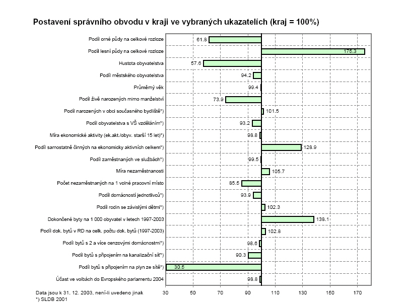 Postavení správního obvodu v kraji ve vybraných ukazatelích (kraj = 100 %)