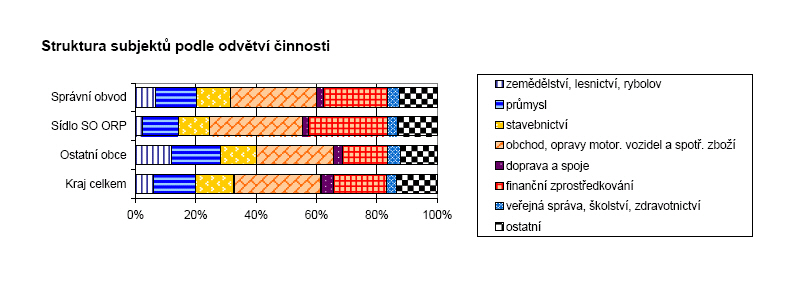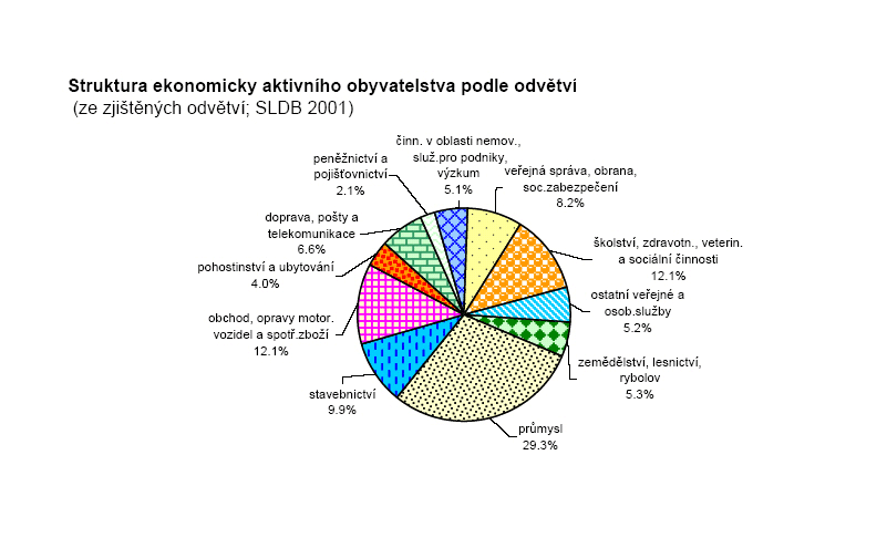 Struktura ekonomicky aktivního obyvatelstva podle odvětví (ze zjištěných odvětví, SLDB 2001)