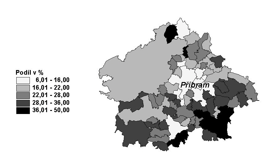 Podíl neobydlených bytů na bytech celkem v roce 2001