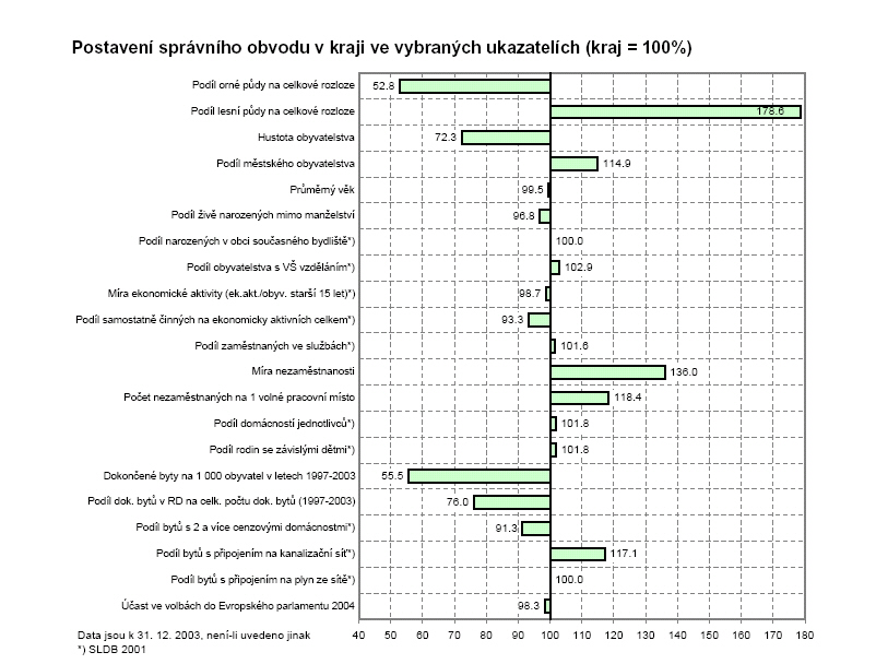 Postavení správního obvodu v kraji ve vybraných ukazatelích (kraj = 100 %)