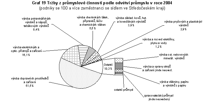 Podíl tržeb z průmyslové činnosti u podniků se sídlem ve Středočeském kraji na celkovém objemu tržeb v celé ČR se v letech 2000-2004 pohyboval mezi sedmnácti až osmnácti procenty a byl vůbec nejvyšší ze všech čtrnácti krajů v České republice.