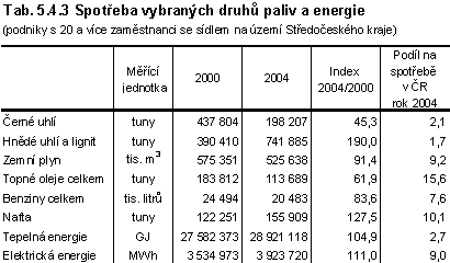 Spotřeba nafty u podniků se sídlem v kraji vzrostla v roce 2004 proti roku 2000 téměř o 28 % a podíl na republikové spotřebě se ve sledovaném období zvýšil o 4,2 procentního bodu. Podílem 10,1 % na celorepublikové spotřebě patří podnikům se sídlem ve Středočeském kraji třetí pozice mezi všemi kraji České republiky.