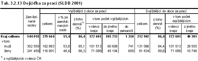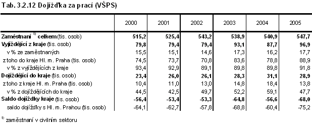 Proti roku 1991 došlo v dojížďce za zaměstnáním k poměrně výrazným změnám. Praha zůstala centrem největšího soustředění dojížďky v republice, přibylo dalších 26 tisíc dojíždějících do Prahy ze Středočeského kraje, takže v roce 2001 vyjíždělo ze Středočeského kraje do Prahy za prací 96 tisíc osob. Tento počet představuje 30 % z celkového mezikrajského pohybu v republice a je současně největším pohybem za prací v rámci celé ČR.