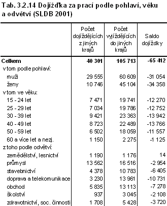 Pokud jde o věkovou strukturu vyjíždějících osob, intenzita vyjížďky za prací s rostoucím věkem klesá. Nejvyšší intenzitu vyjížďky vykazuje věková kategorie 15-24 let, kde podíl vyjíždějících za prací na celkovém počtu zaměstnaných osob této věkově kategorie činí 62,2 %, vysokou intenzitu vyjížďky vykazuje i skupina 25-29 let (58,3 %) a 30-39 let (50,6 %). V nejvyšší věkové kategorii nad 60 let dosahuje intenzita vyjížďky 33,9 %. Jak je patrné z tabulky 3.2.14, ztrácí Středočeský kraj vyjížďkou všechny věkové skupiny zaměstnaných, ve všech věkových skupinách je mezikrajské saldo záporné.