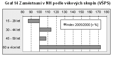 Vedle toho rostoucí naděje dožití a zvyšující se věk odchodu do důchodu má za následek nárůst počtu zaměstnaných osob ve věku nad 60 let. Mezi lety 2000 – 2005 stoupl v této věkové kategorii počet zaměstnaných o 9 tisíc osob, což představuje nárůst téměř o 73 % při průměrné roční změně 11,5 %. Podíl zaměstnaných ve věku nad 60 let na celkovém počtu zaměstnaných v NH se v průběhu sledovaného období zvýšil o 1,5 procentního bodu.