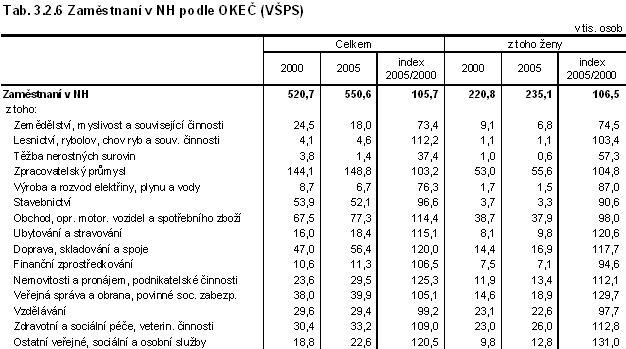 Vzhledem ke zdrojům dat a metodice jejich zjišťování se údaje o průměrném evidenčním počtu zaměstnanců podle OKEČ v roce 2005 uvedené v tabulce 3.2.8 liší od údajů o počtu zaměstnaných v NH podle OKEČ z tabulky 3.2.6, které byly získány z Výběrového šetření pracovních sil, které má odlišný soubor respondentů i metodické přístupy.