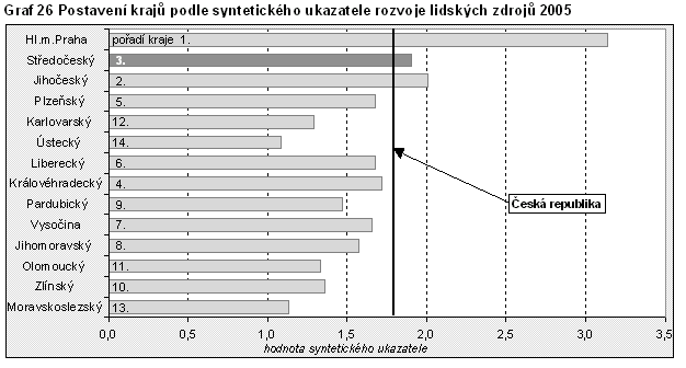 Pořadí jednotlivých krajů podle souhrnného syntetického ukazatele přisoudilo první místo Hlavnímu městu Praha, což asi není žádné překvapení vzhledem k umístění v dílčích oblastech. Naopak protipól a nejnižší příčka pomyslného žebříčku pro kraj Ústecký již tak jednoznačně z hodnocení jednotlivých oblastí nevyzněl. Ale předposlední pořadí podle ukazatele nezaměstnanosti a až 11. místo podle ukazatele vzdělávání spolu s průměrem podle ukazatele zaměstnanosti přisoudily tomuto kraji tuto v souhrnném hodnocení poslední pozici.