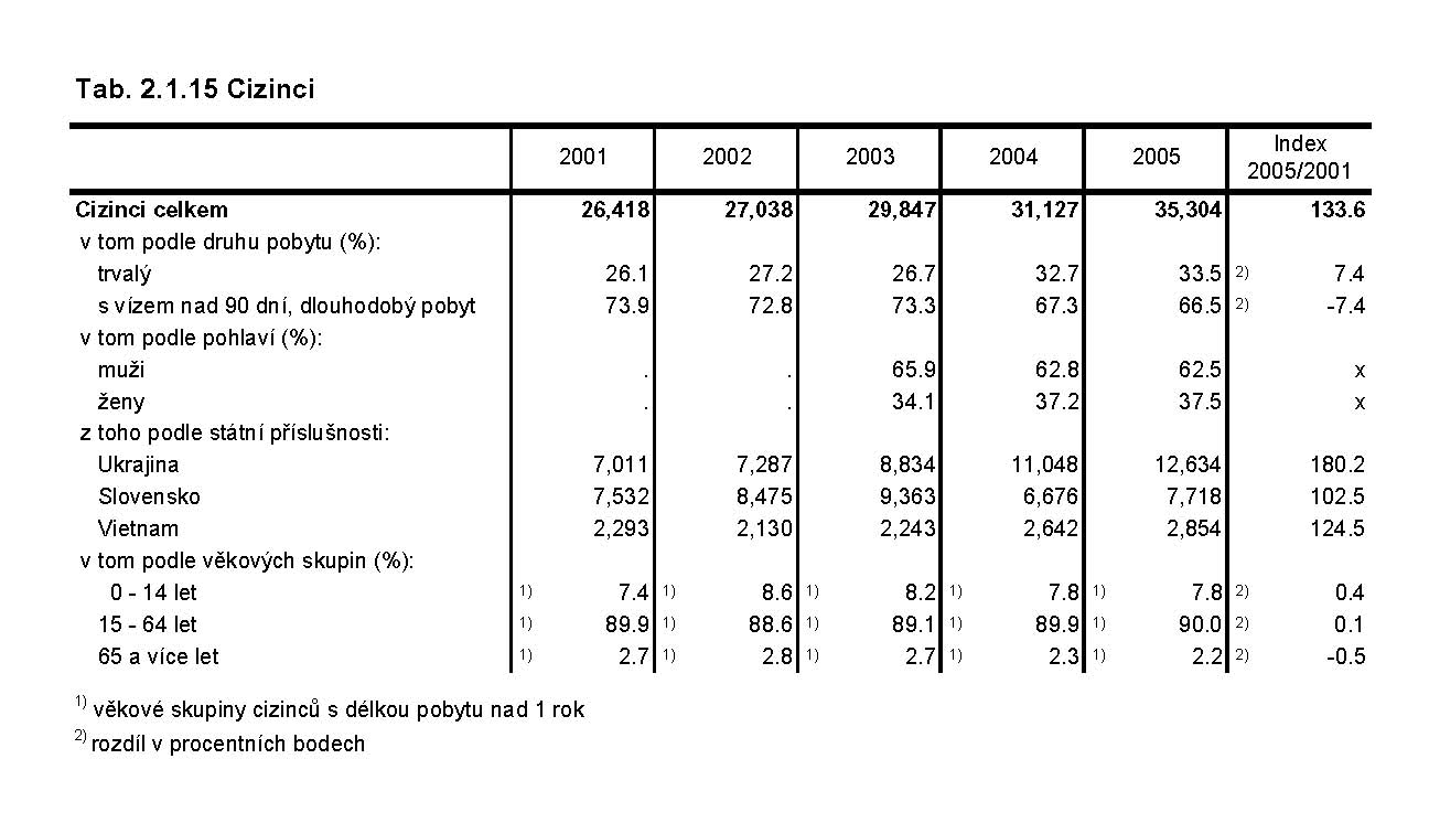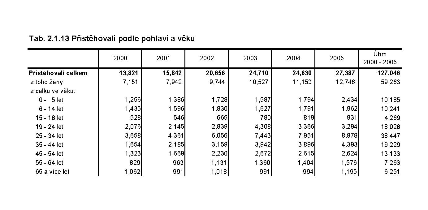 Tab. 2.1.13 Přistěhovalí podle pohlaví a věku