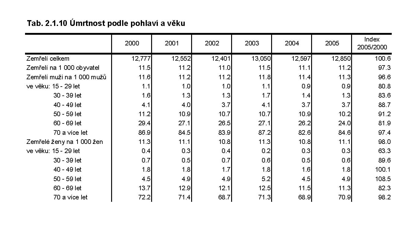 Tab. 2.1.10 Úmrtnost podle pohlaví a věku