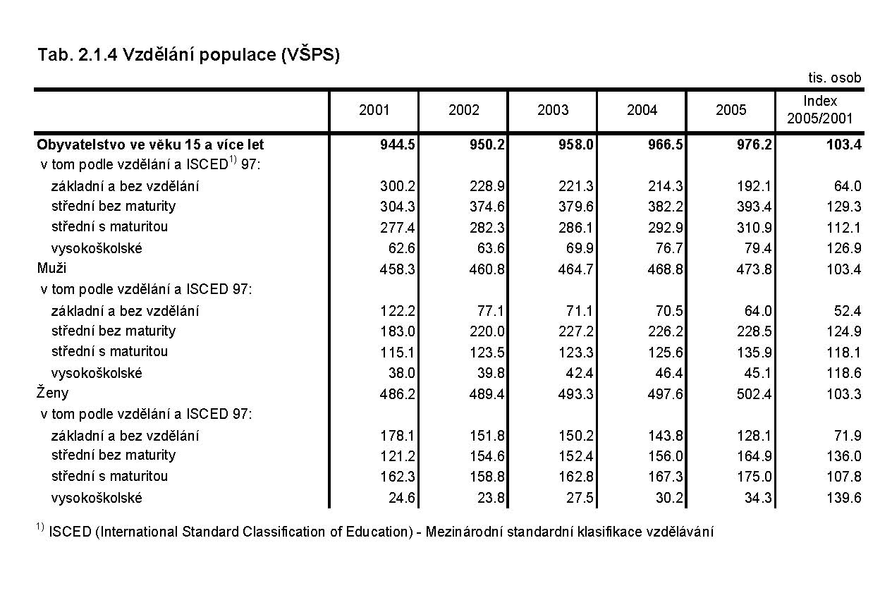 Tab. 2.1.4 Vzdělání populace (VŠPS)