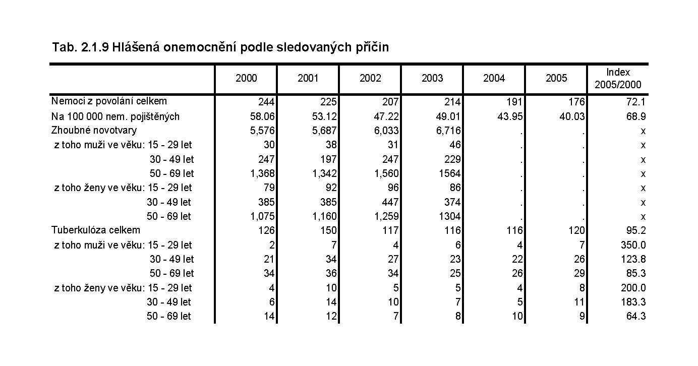 Tab. 2.1.9 Hlášená onemocnění podle sledovaných příčin