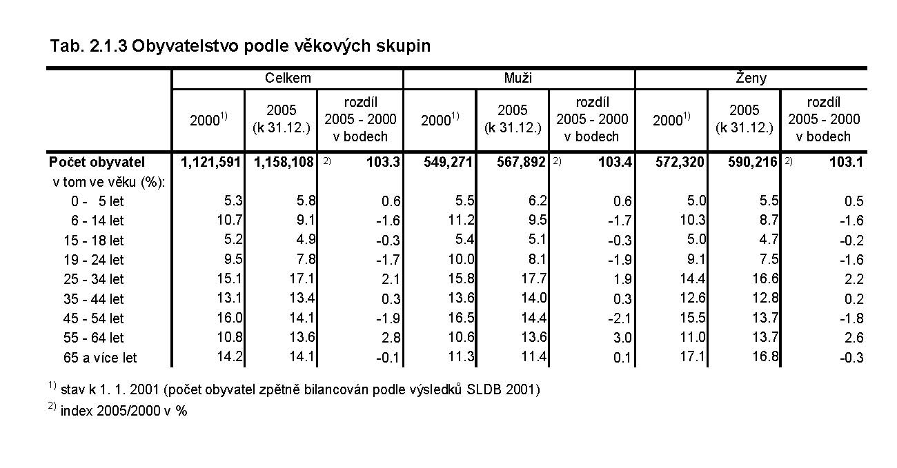 Tab. 2.1.3 Obyvatelstvo podle věkových skupin