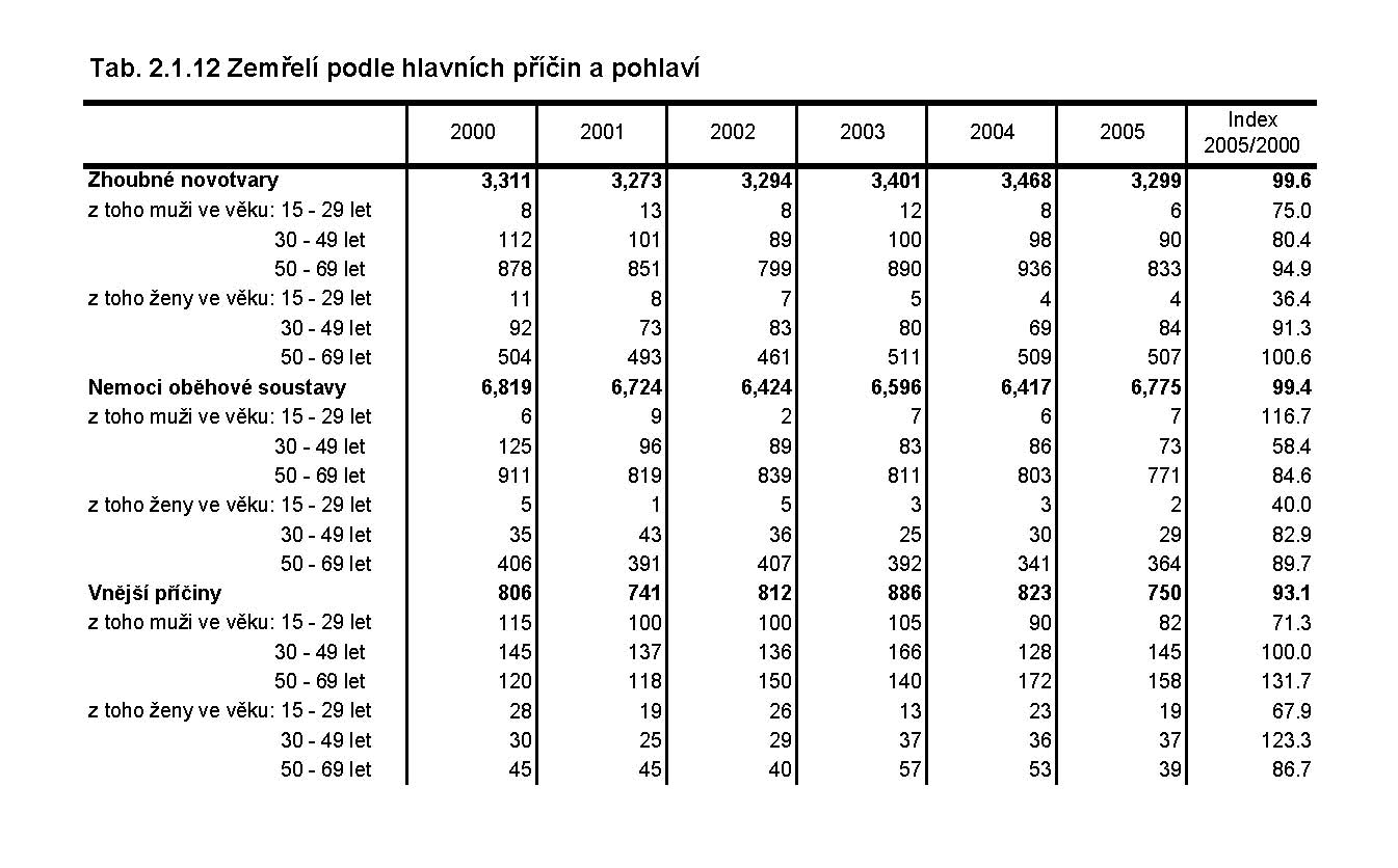 Tab. 2.1.12 Zemřelí podle hlavních příčin a pohlaví