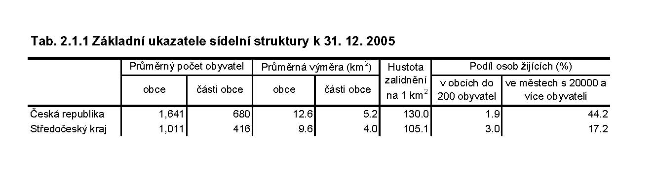 Tab. 2.1.1 Základní ukazatele sídelní struktury k 31. 12. 2005