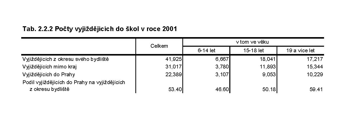 Tab. 2.2.2 Počty vyjíždějících do škol v roce 2001