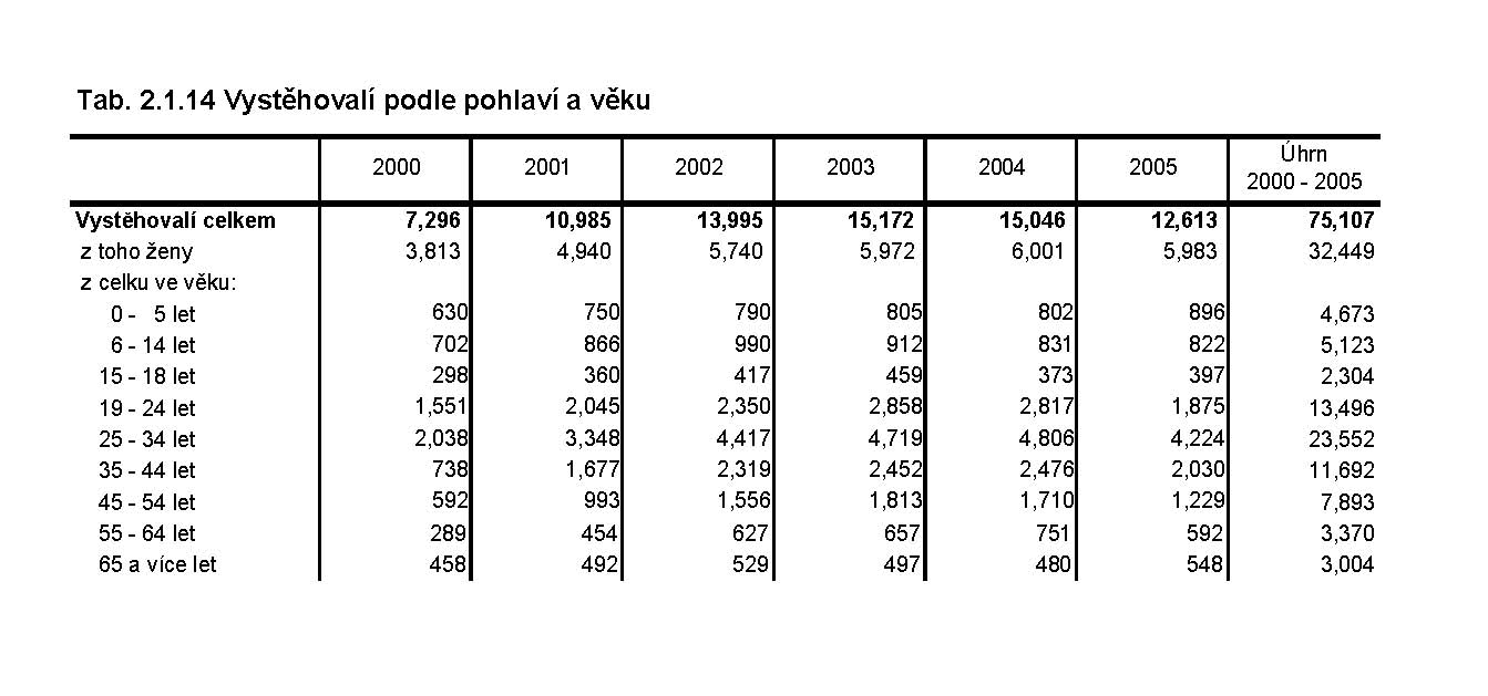 Tab. 2.1.14 Vystěhovalí podle pohlaví a věku
