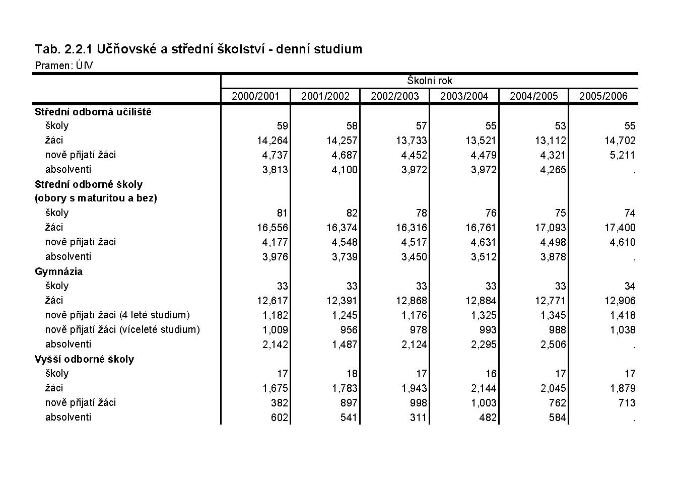 Tab. 2.2.1 Učňovské a střední školství - denní studium