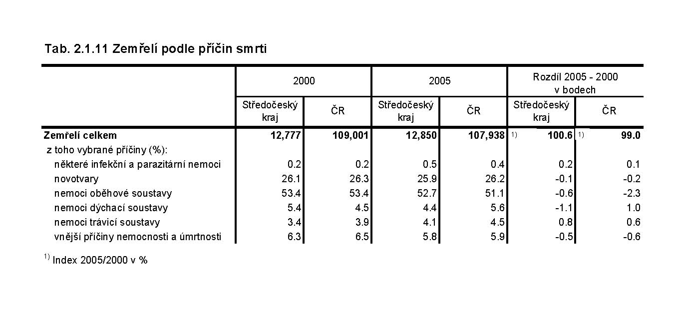 Tab. 2.1.11 Zemřelí podle příčin smrti