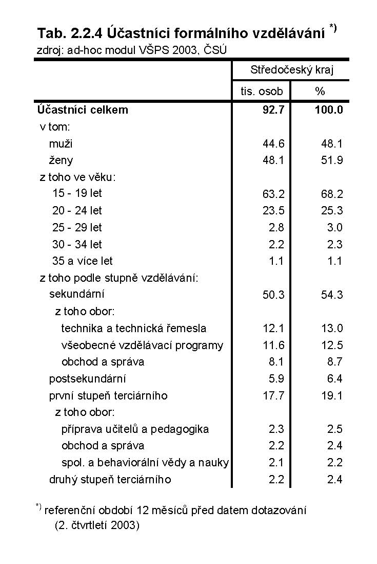 Tab. 2.2.4 Účastníci formálního vzdělávání
