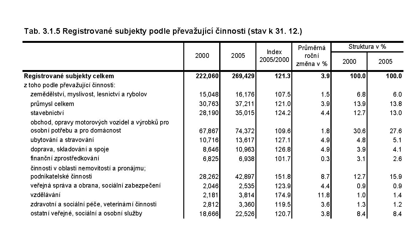 Tab. 3.1.5 Registrované subjekty podle převažující činnosti (stav k 31. 12.)
