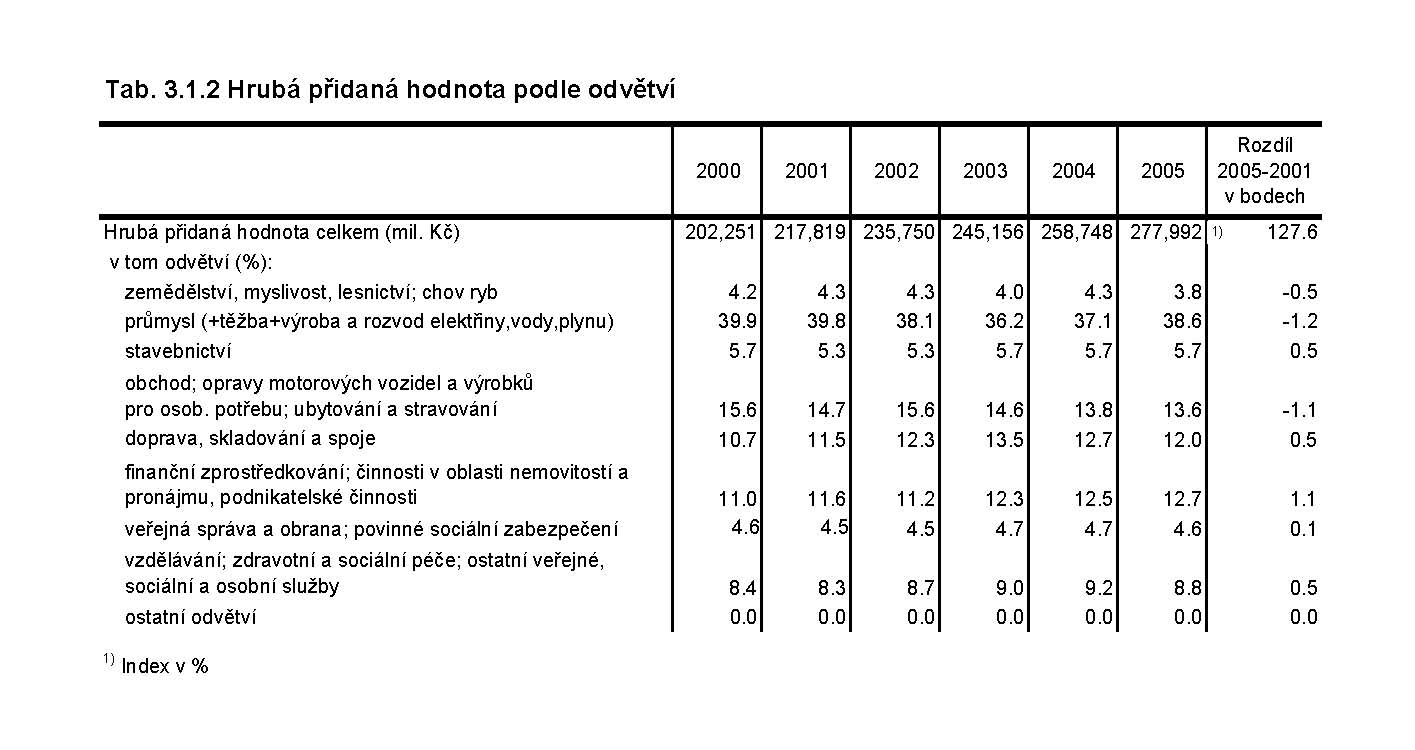 Tab. 3.1.2 Hrubá přidaná hodnota podle odvětví