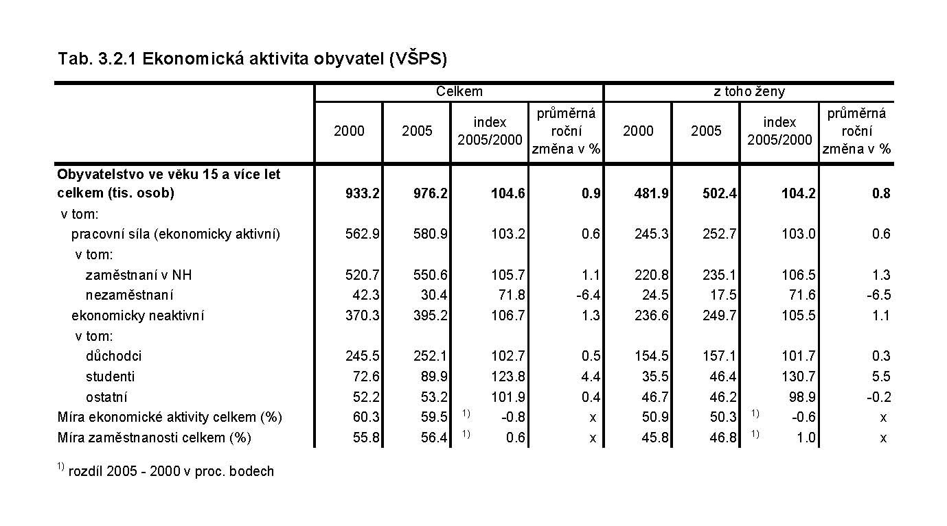 Tab. 3.2.1 Ekonomická aktivita obyvatel (VŠPS)