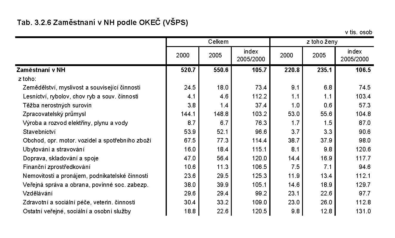 Tab. 3.2.6 Zaměstnaní v NH podle OKEČ (VŠPS)