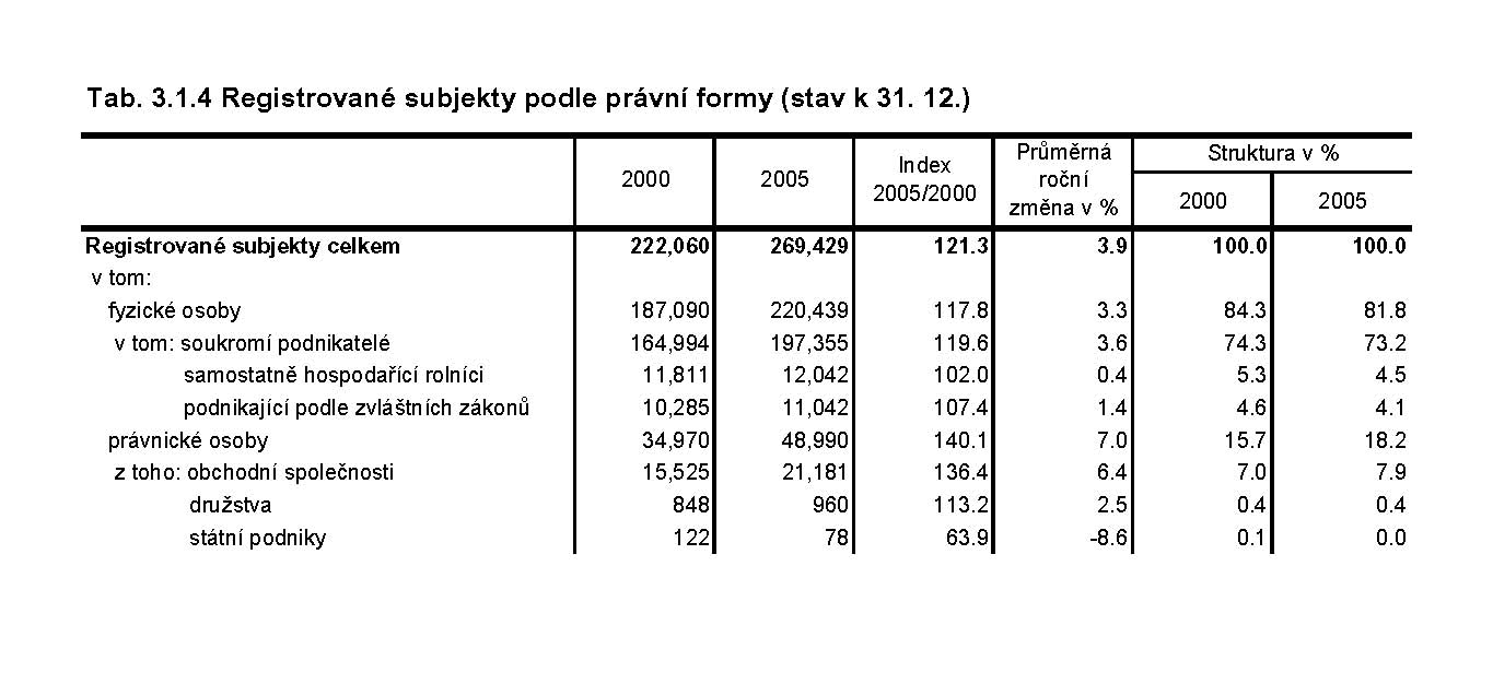 Tab. 3.1.4 Registrované subjekty podle právní formy (stav k 31. 12.)