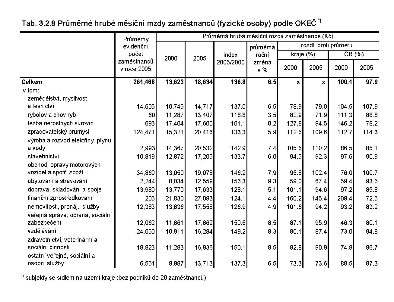 Tab. 3.2.8 Průměrné hrubé měsíční mzdy zaměstnanců (fyzické osoby) podle OKEČ