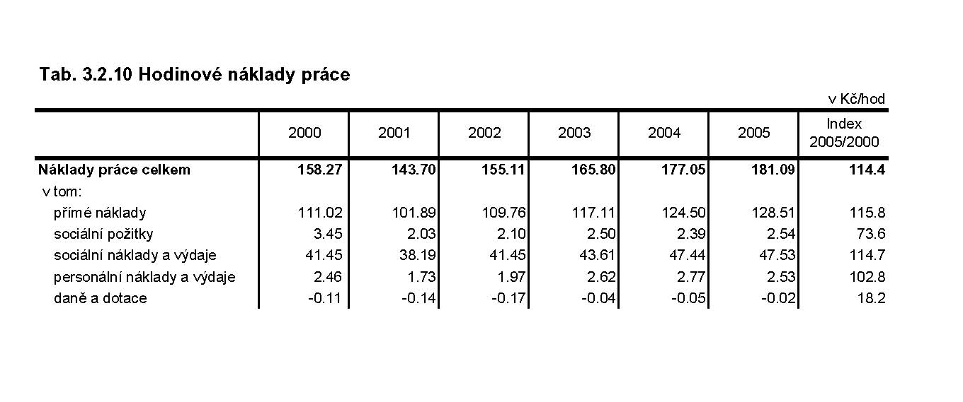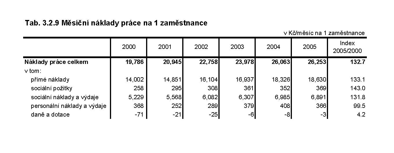 Tab. 3.2.9 Měsíční náklady práce na 1 zaměstnance